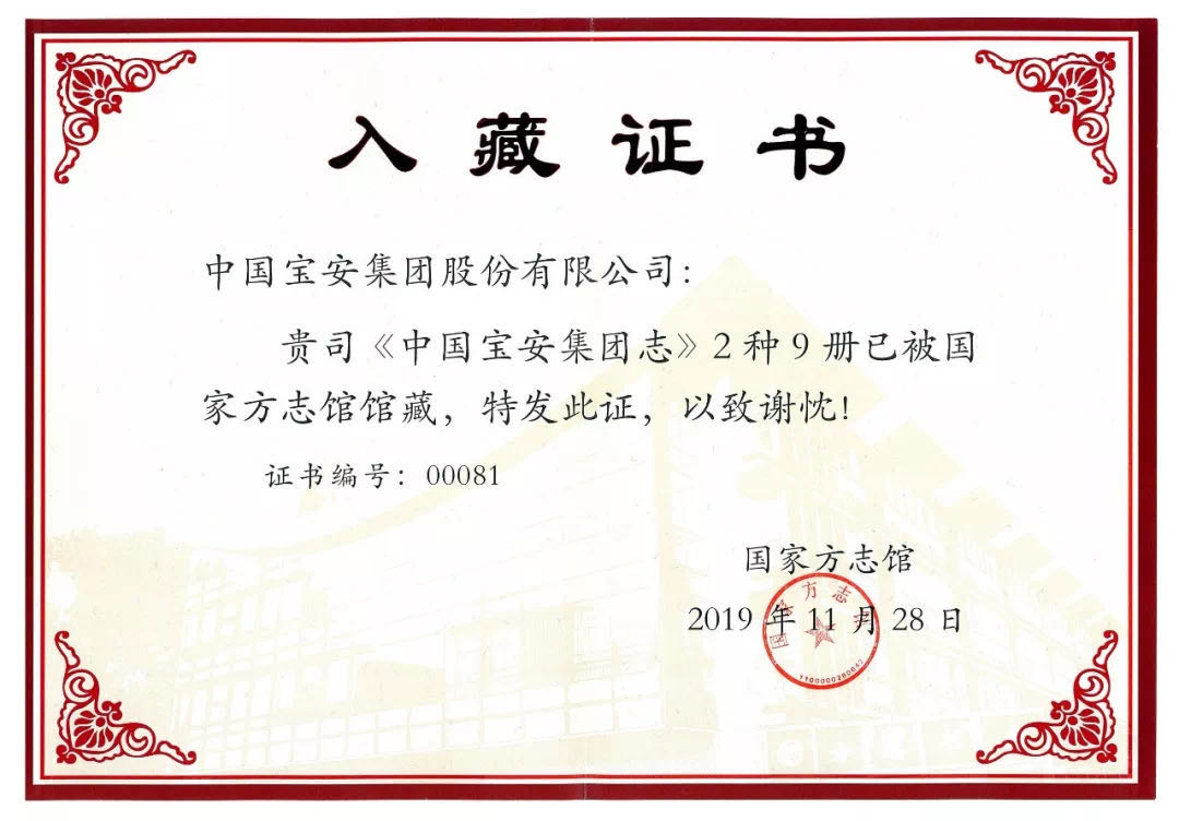近日,《中国宝安集团志》被国家方志馆收藏。集团志的入藏,让社会各界更全面了解集团作为新中国第一家股份制企业,在改革开放这一特定历史时期中的发展历史,对集团企业文化建设和宣传都具有重要意义。